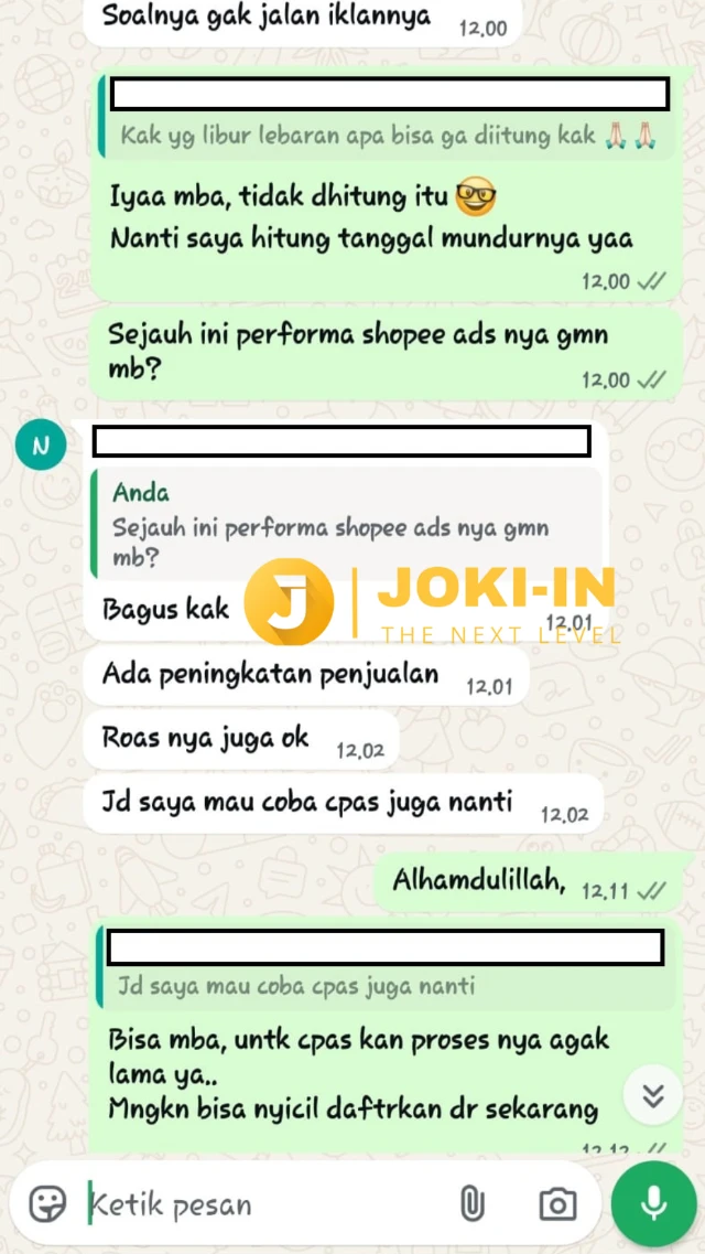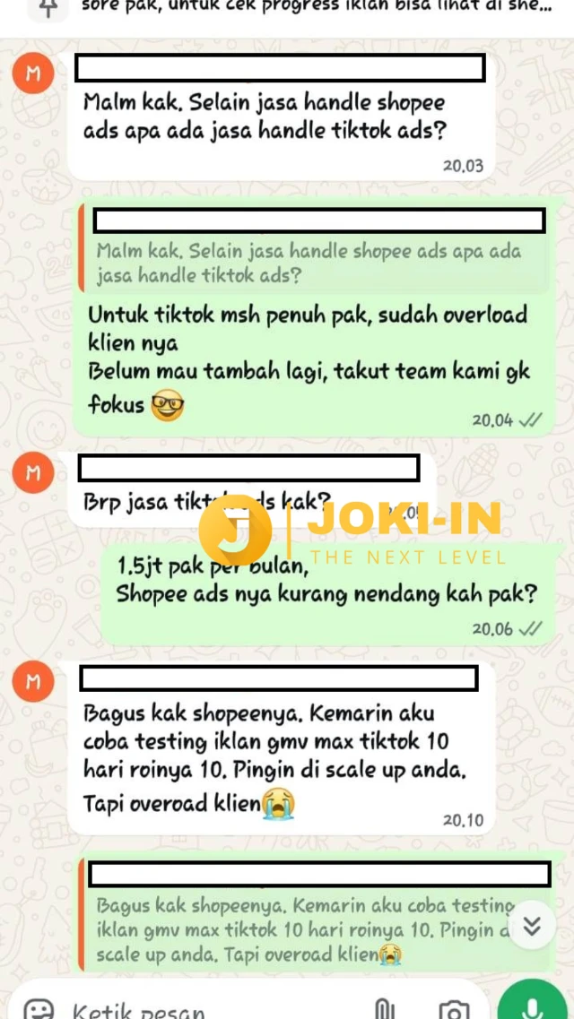 Iklan shopee nya bagus banget, sempat nyoba sendiri tapi roasnya kecil setelah di handle joki-in roasnya naik drastis. Ingin scale pake tiktok ads tapi overload klien nya. Sedih